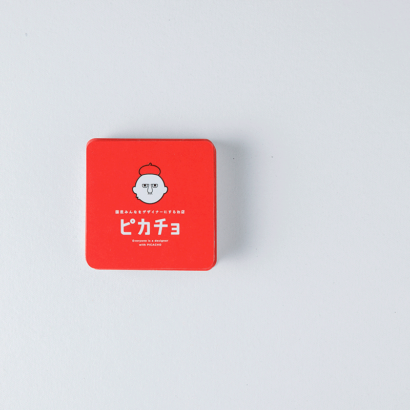 コースターぐらいのサイズの、ましかくのトランプです。裏面とジョーカー、さらにJ(ジャック)・Q(クイーン)・K(キング)が、オリジナルデザインとなります。JQKは、4マークそれぞれ同じデザインとなりますので、合計で5種類のデザインデータが必要になります。
